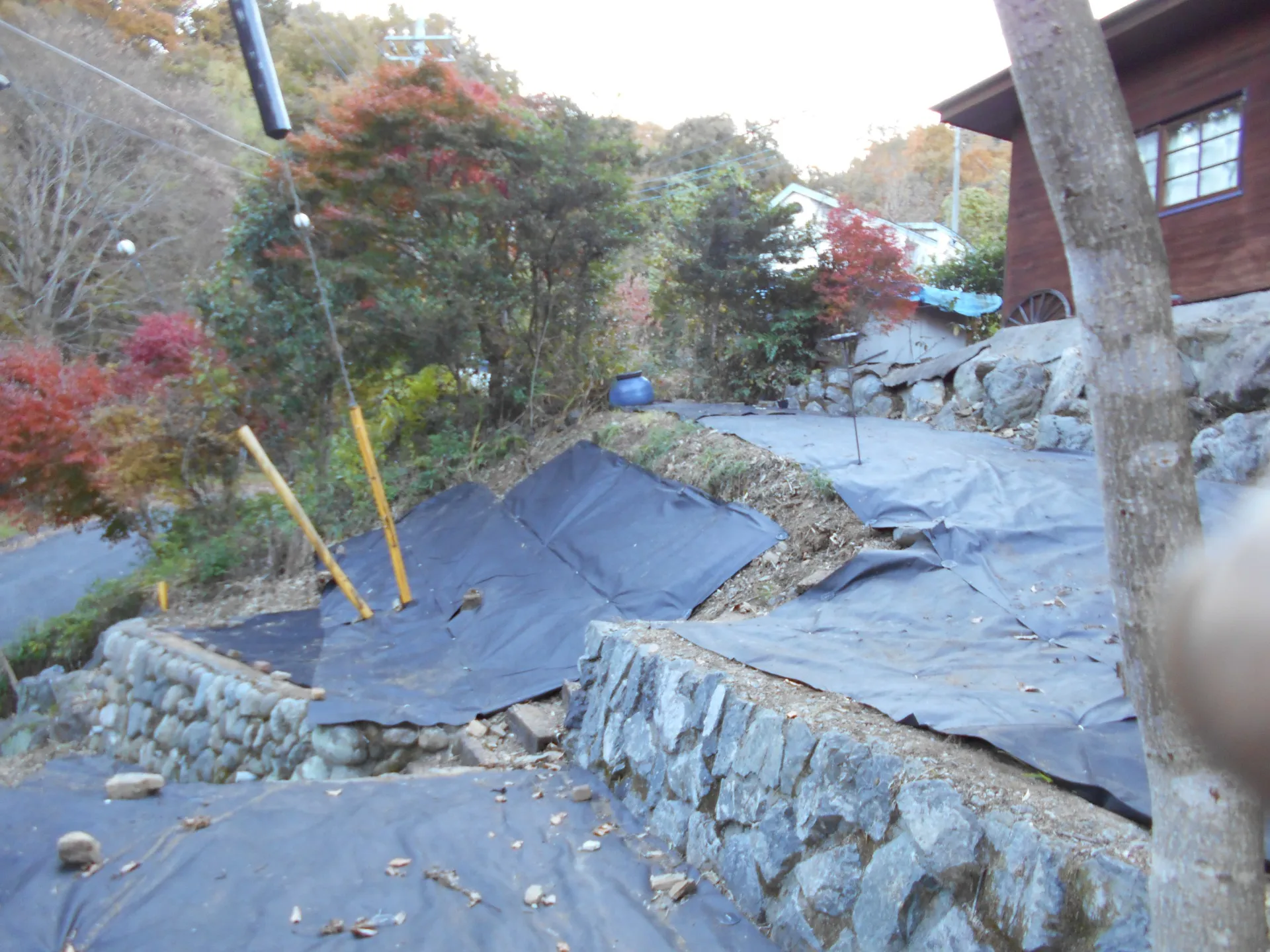 段々畑のシート施工?